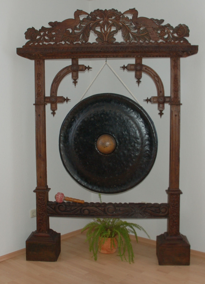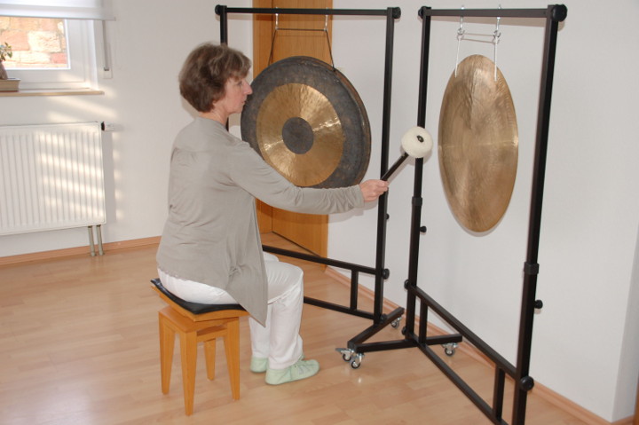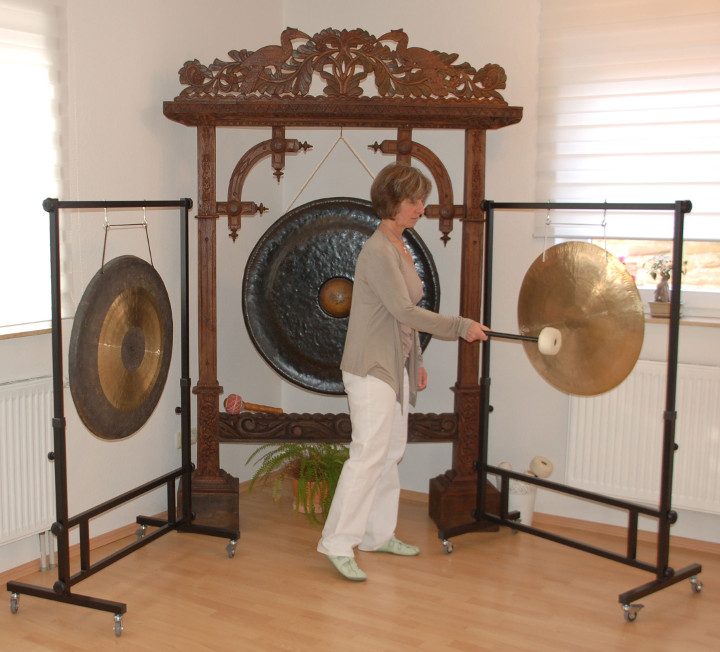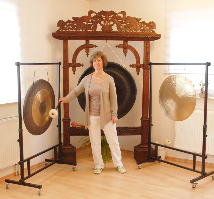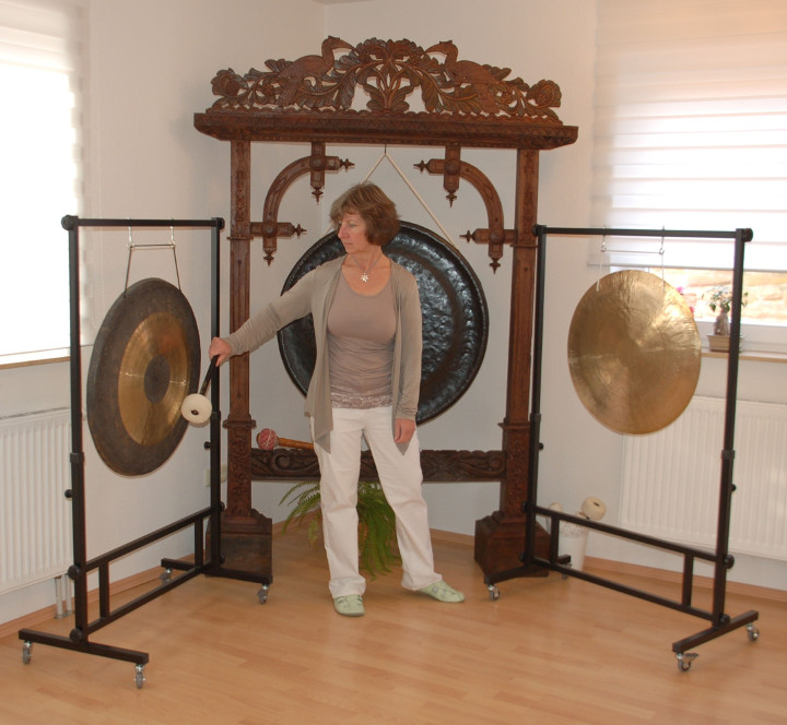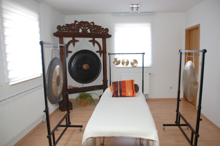 Ein noch intensiveres Erleben verspricht die Gong-Klangmassage. Klang ist Schwingungsenergie, und wer einmal die wunderbare Kraft des Gongklanges erfahren hat, kann sich dieser Faszination so schnell nicht wieder entziehen. Ausgewählte und sehr hochwertige Gongs werden um die Behandlungsliege positioniert und ebenfalls sehr sanft gespielt. Dabei durchdringen die Klangwellen den gesamten Körper und massieren jede einzelne Zelle. Stress und Verspannungen beginnen sich zu lösen. Eine wunderbare Entspannung stellt sich ein. Patienten berichten immer wieder, dass sie sich wohltuend vom Klang eingehüllt fühlen. Gesundungsprozesse, sowohl körperlicher als auch seelischer Art, werden unterstützt.